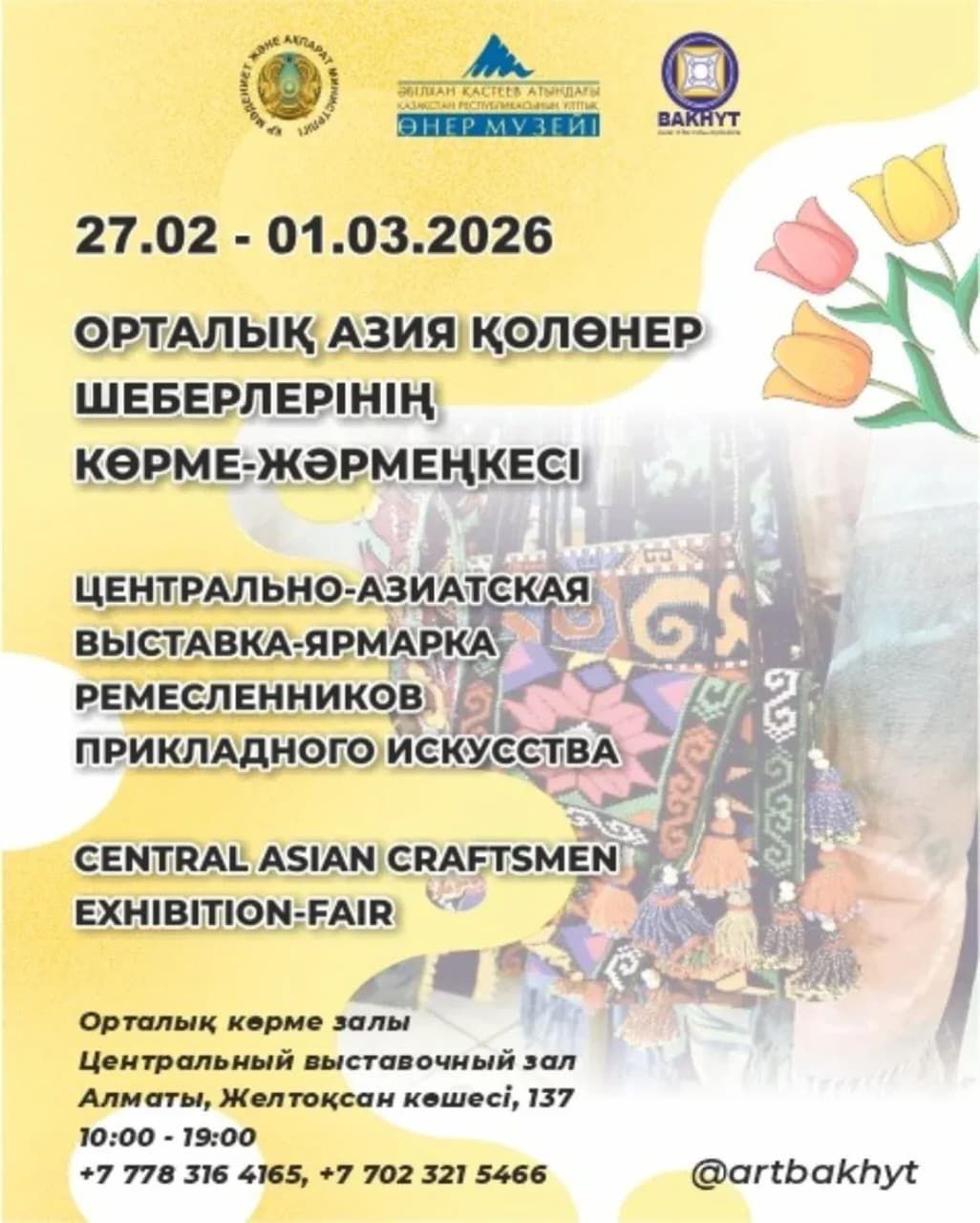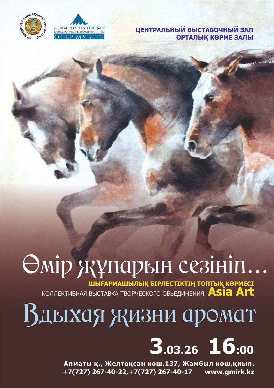 2026 жылдың 3 наурызында сағат 16:00-де Әбілхан Қастеев атындағы Қазақстан Республикасының Ұлттық өнер музейінің Орталық көрме залында «Asia Art» шығармашылық бірлестігінің «Өмір жұпарын сезініп...» атты көрмесінің салтанатты ашылуы өтеді.