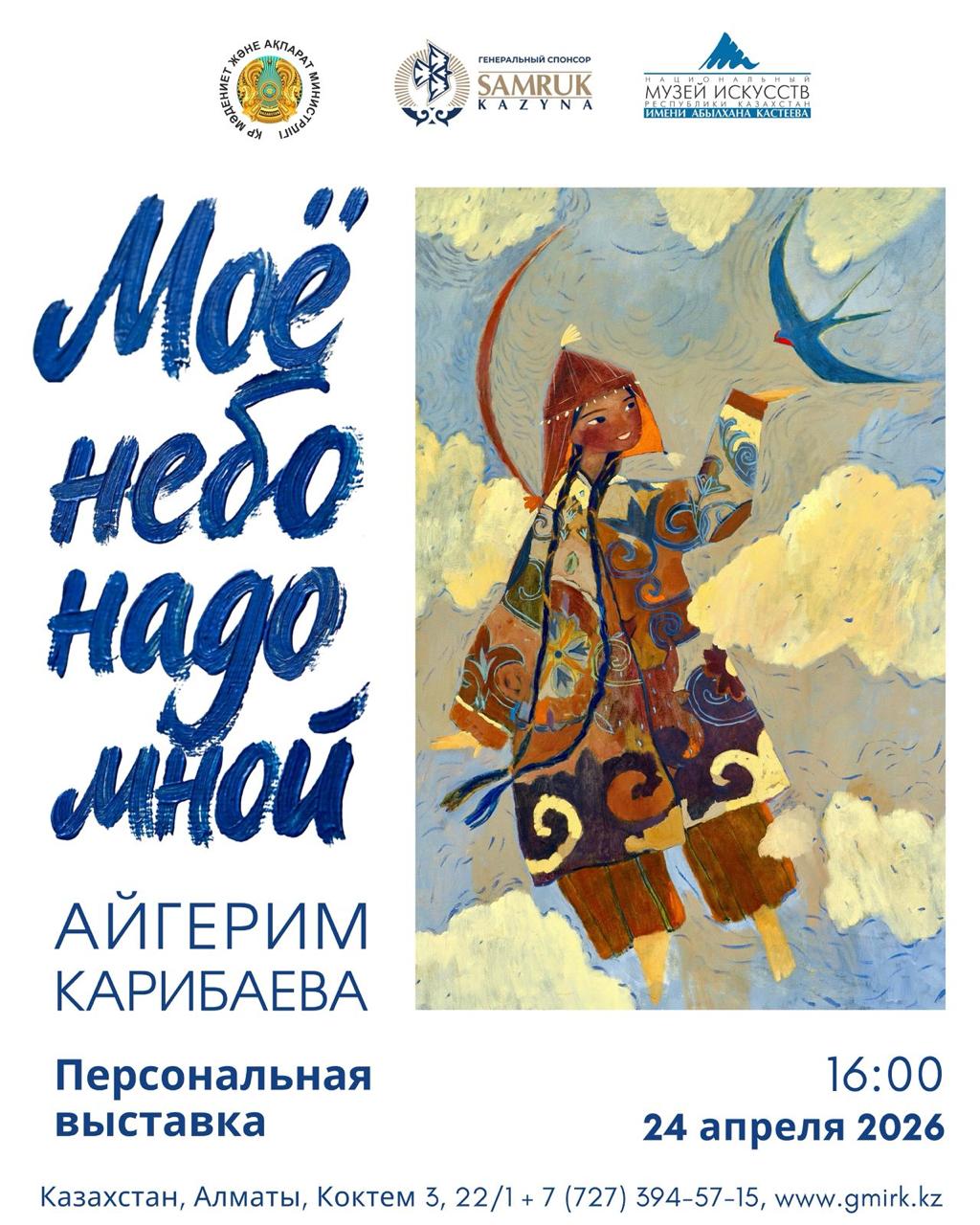 24 апреля 2026 года в 16:00 в Национальном музее искусств Республики Казахстан имени Абылхана Кастеева состоится открытие персональной выставки известной современной казахстанской художницы Айгерим Карибаевой «Моё небо надо мной».