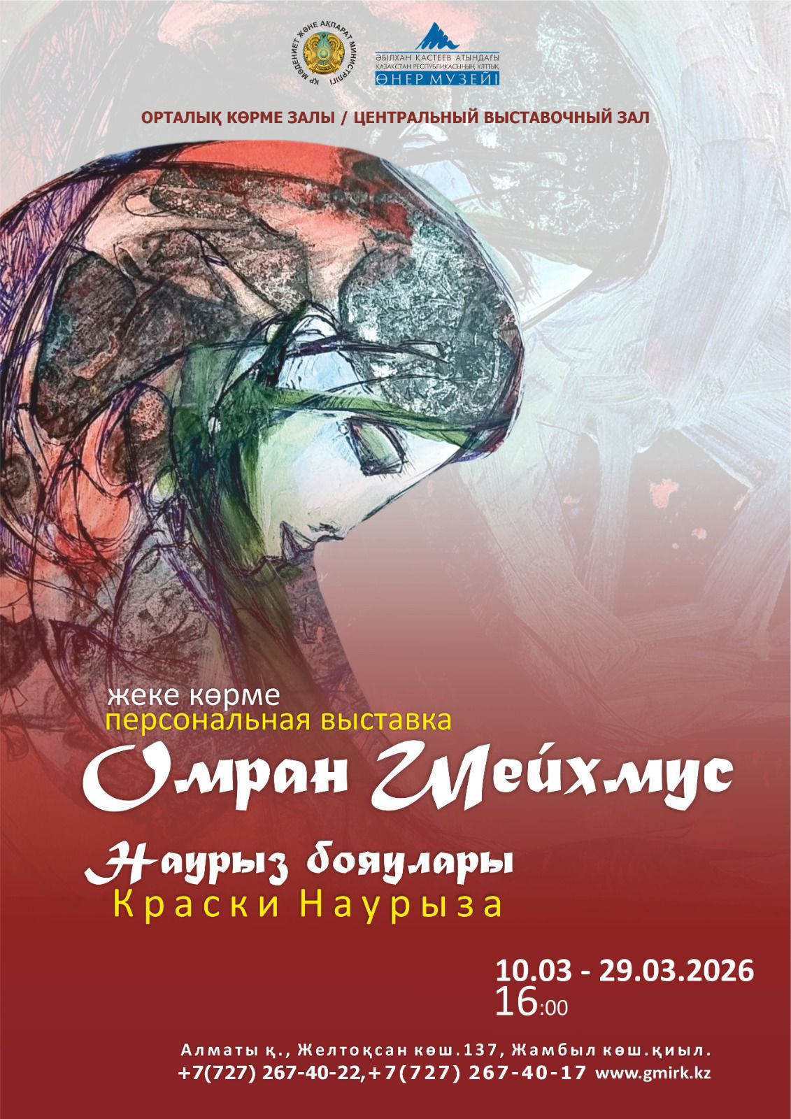 2026 жылдың 10 наурызында сағат 16:00-де Әбілхан Қастеев атындағы Қазақстан Республикасының Ұлттық өнер музейінің Орталық көрме залында Омран Шейхмустың «Наурыз бояулары» атты жеке көрмесінің салтанатты ашылуы өтеді. Көрме экспозициясында суретшінің 60-тан астам кескіндеме туындысы көпшілік назарына ұсынылады.
