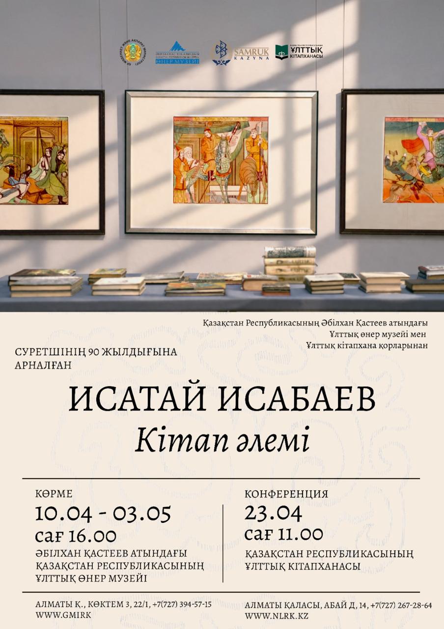 2026 жылғы 10 сәуір күні сағат 16:00-де Әбілхан Қастеев атындағы Қазақстан Республикасының Ұлттық өнер музейінде Қазақстанның еңбек сіңірген өнер қайраткері, ұлттық графика өнерінің негізін қалаушылардың бірі Исатай Исабаевтың 90 жылдық мерейтойына арналған «Исатай Исабаев: Кітап әлемі» атты ретроспективті көрменің салтанатты ашылуы өтеді.